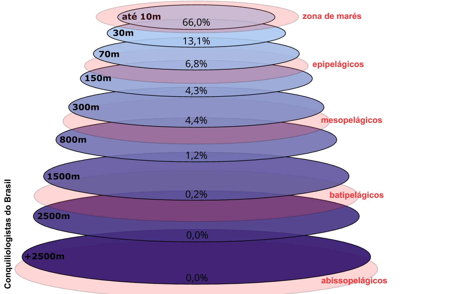 O gráfico a seguir mostra a porcentagem de espécies do total já listado em nosso banco de dados em determinada faixa de profundidade.