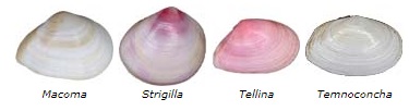Características gerais: São lateralmente comprimidos e finos. A parte posterior possui uma pequena abertura. As cores predominantes na família são o branco e o rosa/salmão. Como a concha fica em posição obliqua no solo, a valva direita é geralmente mais inflada e convexa.