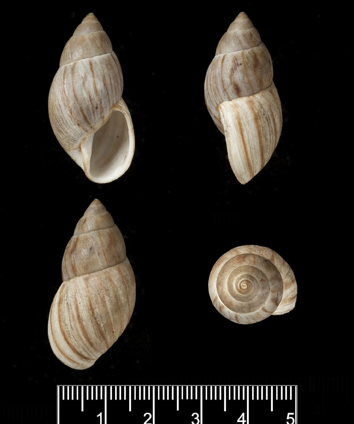 Fotos: (1,2) Natural History Museum, London: LECTOTYPE de Bulimus nucinus Reeve 1850, NHMUK 1975379, coll. Hugh Cuming, 36.8mm