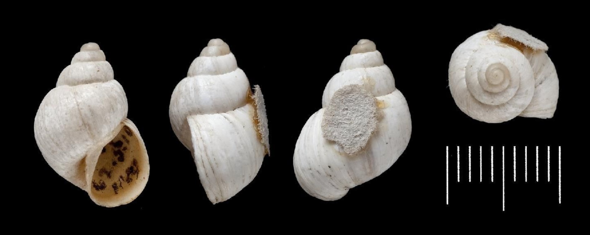 Fotos: (1) Senckenberg Natural History Museum, Frankfurt: SYNTYPE de Bostryx albus (G. B. Sowerby I, 1833), SMF 10068, Chile, 20.7mm; (2) Natural History Museum, London: SYNTYPE NHMUK 1842.5.10.149-151, Chile
