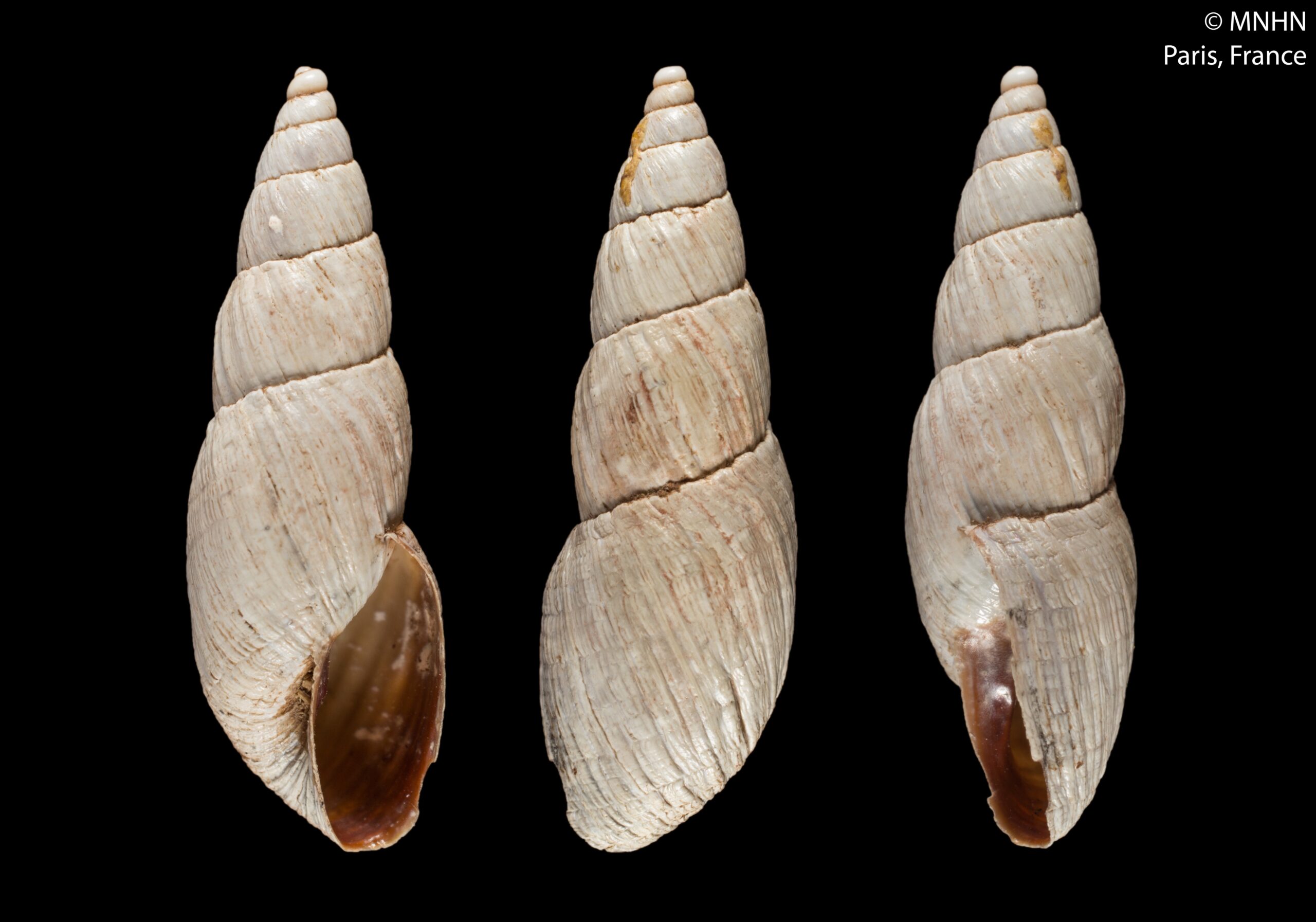 (1,2) LECTOTYPE de Bulimulus (Ataxus) huayaboensis Dautzenberg, 1902, MNHN-IM-2000-28054, “Huayabo (Maranon) Pérou, 2000 m”, coll. M. Baer, 9 exemplares, Coll. du Journal de Conchyliologie, 23.5mm;