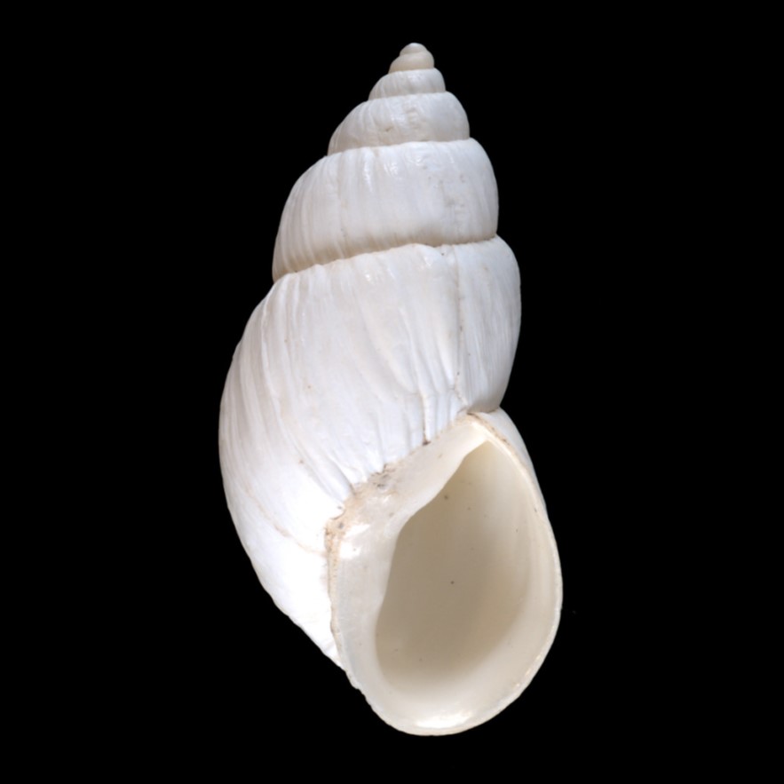 (Pilsbry, 1896): “Shell oblong-ovate, solid; opaque-white, with irregular, interrupted corneous streaks, or uniform white. Surface lusterless, with irregular growth-wrinkles (and sometimes showing some faint incised spirals, or coarse malleation). Spire conic, with convex outlines, apex somewhat mamillar, whorls 6, convex. Aperture slightly less than half the length of shell, long ovate; outer lip sharp, with a broad and rather heavy internal thickening. Columella slightly concave, columellar lip dilated; parietal callus moderately heavy, white. Umbilicus narrow.”