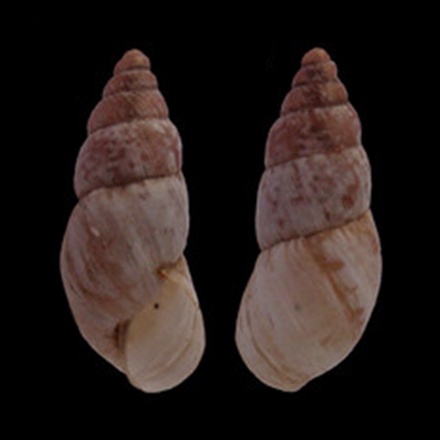 (Pilsbry, 1896): “Shell openly rimate, narrowly long-ovate, rather solid. White, with irregular pellucid or pink maculation, often suffused with a roseate blush on the spire, sometimes unicolored white. Surface lusterless, with rude, irregular growth-striae, sparsely decussated, or bearing granules in spiral series; spiral sculpture of very fine lines. Spire conic, with slightly convex outlines, the apex obtuse. Whorls 6, the upper ones very convex with deep sutures, the lower two less convex, suture slightly and irregularly crenulate; the apical first and a half whorl smooth, corneous or roseate. Last whorl not compressed below. Aperture over one-third the height of shell, long-oval, white within; peristome not expanded, slightly thickened within, the columellar margin dilated above.”