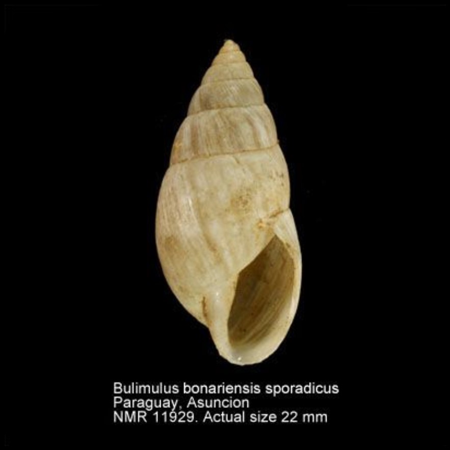 Sinônimos: Bulimulus (Bulimulus) sporadicus (A. d’Orbigny, 1835); Bulimulus (Bulimulus) sporadicus schadei Schlesch, 1835; Bulimulus (Drymaeus) morenoi Preston, 1907; Bulimulus gelidus Reeve, 1849; Bulimulus montevidensis (L. Pfeiffer, 1846); Bulimulus saltensis Holmberg, 1909; Bulimulus sporadicus (A. d’Orbigny, 1835); Bulimus montevidensis L. Pfeiffer, 1846; Helix sporadica A. d’Orbigny, 1835; Siphalomphix bonariensis Rafinesque, 1833