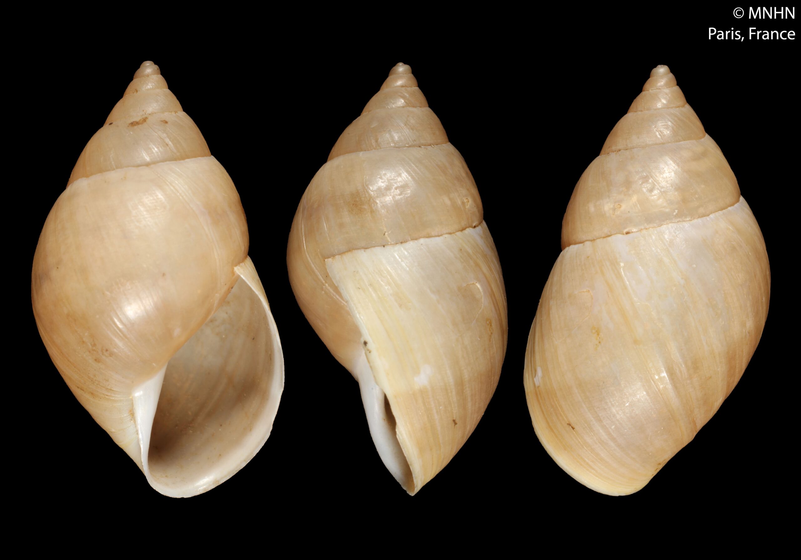 Fotos: (1) cortesia Femorale, 2020, Bulimulus vesicalis, Argentina; (2) Natural History Museum, London: LECTOTYPE de Bulimulus vesicalis Pfeiffer, 1853, NHMUK 1975395, Brasil; (3) Museu Nacional de História Natural, Paris: LECTOTYPE de Bulimus fayssianus Petit de la Saussaye, 1853, MNHN-IM-2000-28053, 26 mm, Argentina, “Nous n’avons rencontré cette espèce qu’une seule fois avec des coquilles qui toutes appartenaient aux eaux de la Plata ou de ses affluents”