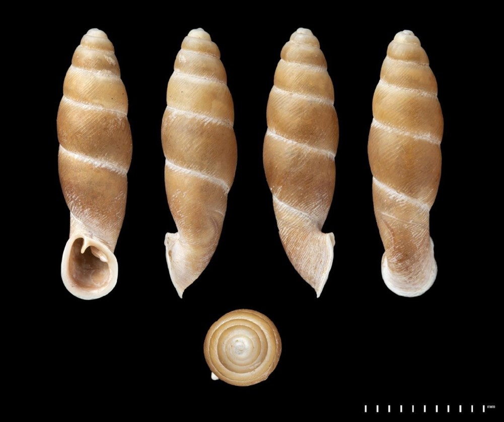 (1) Columbinia bartletti H. Adams, LECTOTYPE, NHMUK 1867.5.18.1, Peru [on the river Ucayali], leg. Bartlett, H = 23.35 mm;
