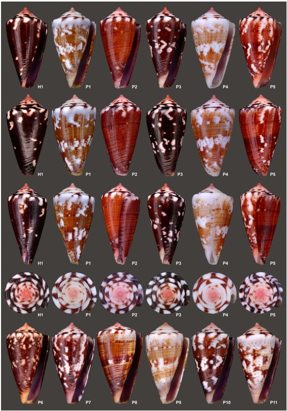 Holótipo e parátipos – Coltro J., jr. 2004. New species of Conidae from northeastern Brazil (Mollusca: Gastropoda). Strombus, 11 : 1-15