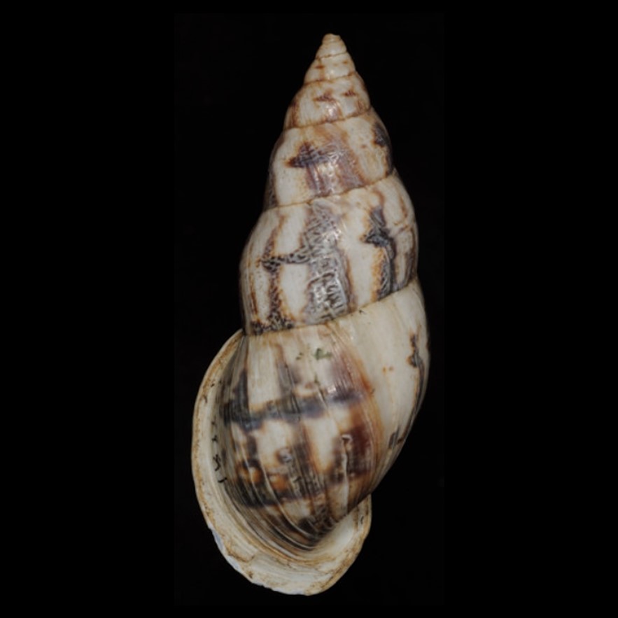 Fotos: (1-3) The Academy of Natural Sciences, Philadelphia: HOLOTYPE de Drymaeus flexuosus megas Pilsbry, 1944, ANSP 179981, Huila, “Upper Magdalena Valley, near Suesa”, 03°15’N 075°15’W, ~ 400 m, A.A. Olsson leg., 1943