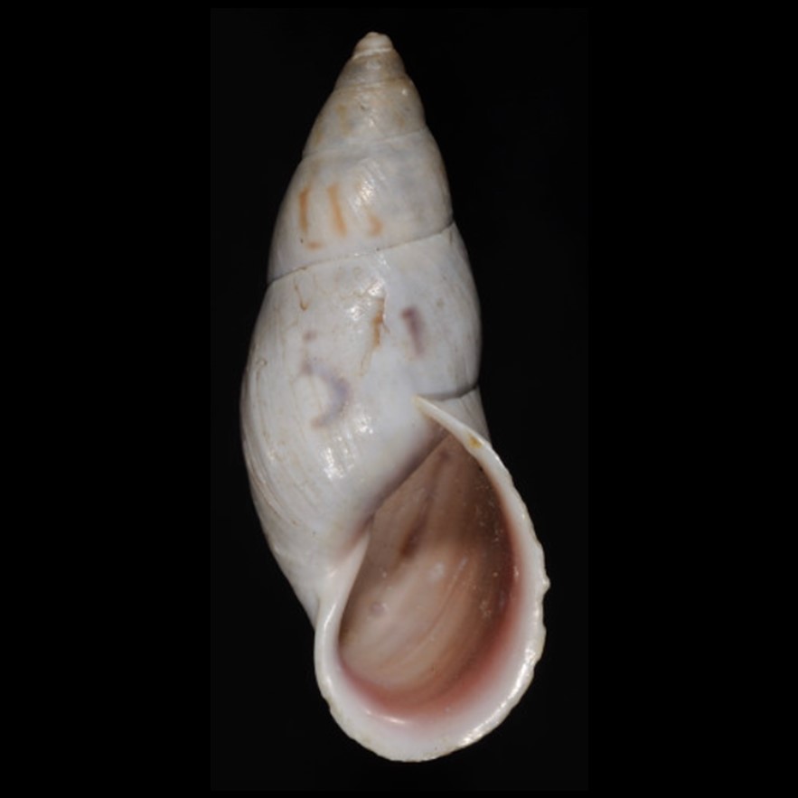 Fotos: (1,2) The Academy of Natural Sciences, Philadelphia: HOLOTYPE de Bulimus pealianus I. Lea, 1838, ANSP 192929, doadores: Cadwalader, C. M. B., Laurette Booth Booth, J. C., Peale, T. R., 1944, “near the Rapids of Angostura”, Colômbia, 29.1mm