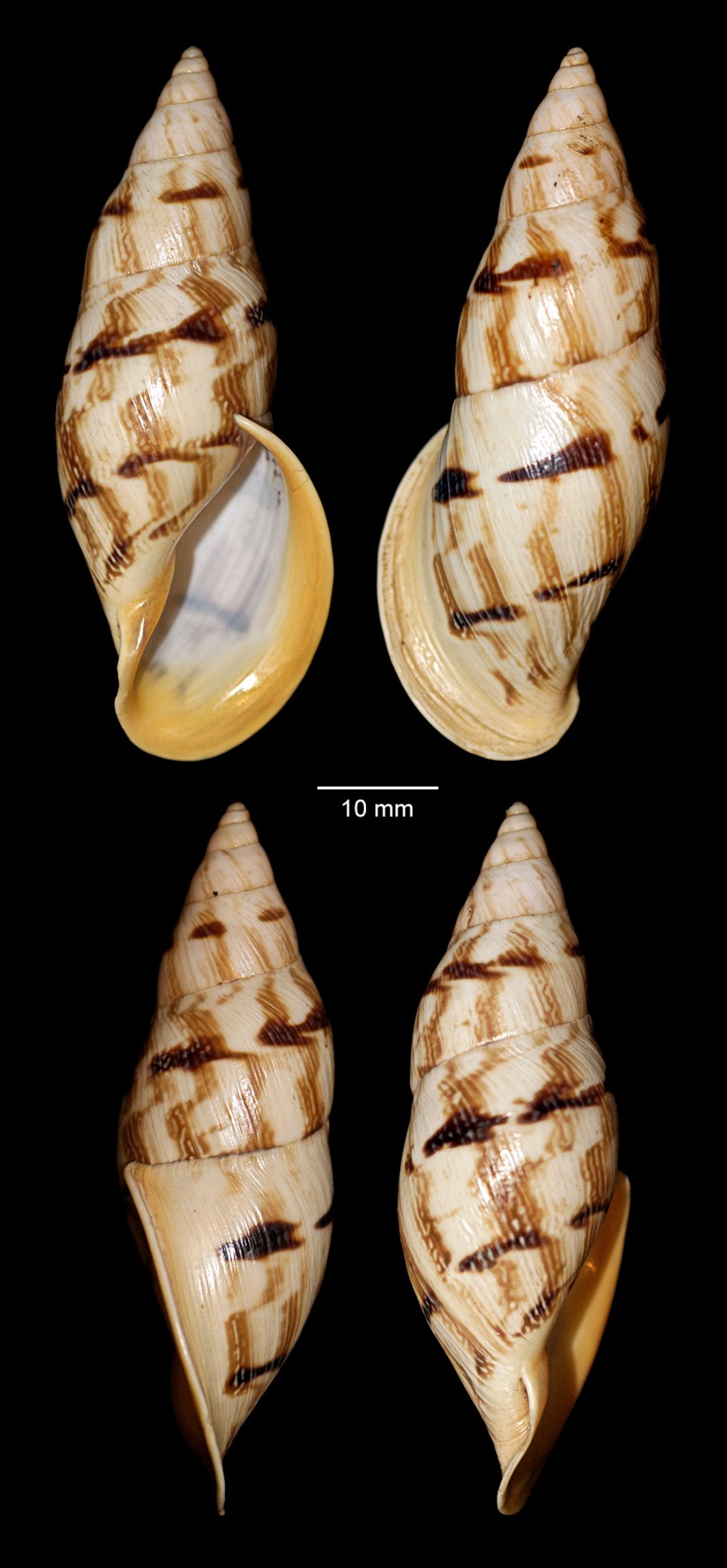 Fotos: (1) Breure et al, 2024: Drymaeus peelii (Reeve, 1859). Abra Patricia, Departamento de Amazonas, Peru, crédito das fotos: Ricardo Vega-Luz (Espanha)