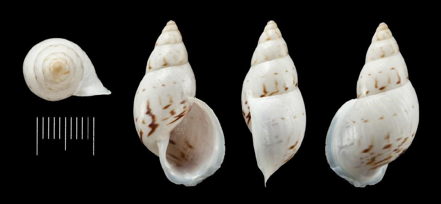 Fotos: (1-3) Natural History Museum, London: LECTOTYPE de Bulimulus (Drymaeus) regularis Fulton, 1905, NHMUK 1905.11.17.2, doador: George Brettingham Sowerby III; Peru, Junín, Chanchamayo