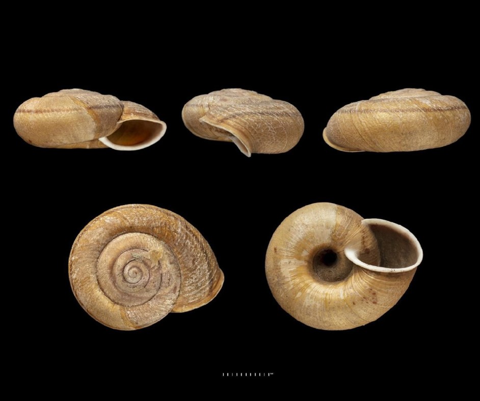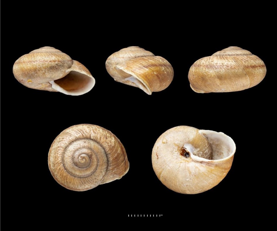 Fotos: (1-3) Natural History Museum, London: SYNTYPE de Epiphragmophora patasensis, NHMUK 20210313, “Patas; Andes of Peru, Andes of Peru”, 36mm; (4) idem, SYNTYPE NHMUK 20210314