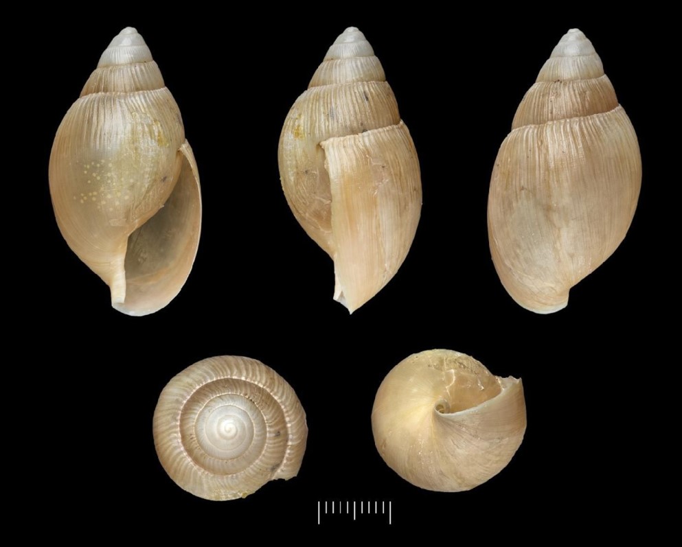Fotos: (1-3) Natural History Museum, London: SYNTYPE de Euglandina saccata (L. Pfeiffer, 1861), NHMUK 20190601