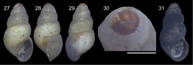 Figura: Simone, L. R. L. (2021): (27–30) HOLOTYPE MZSP 151282, 2.35 mm; (31) PARATYPE MZSP 151283, 2.37 mm