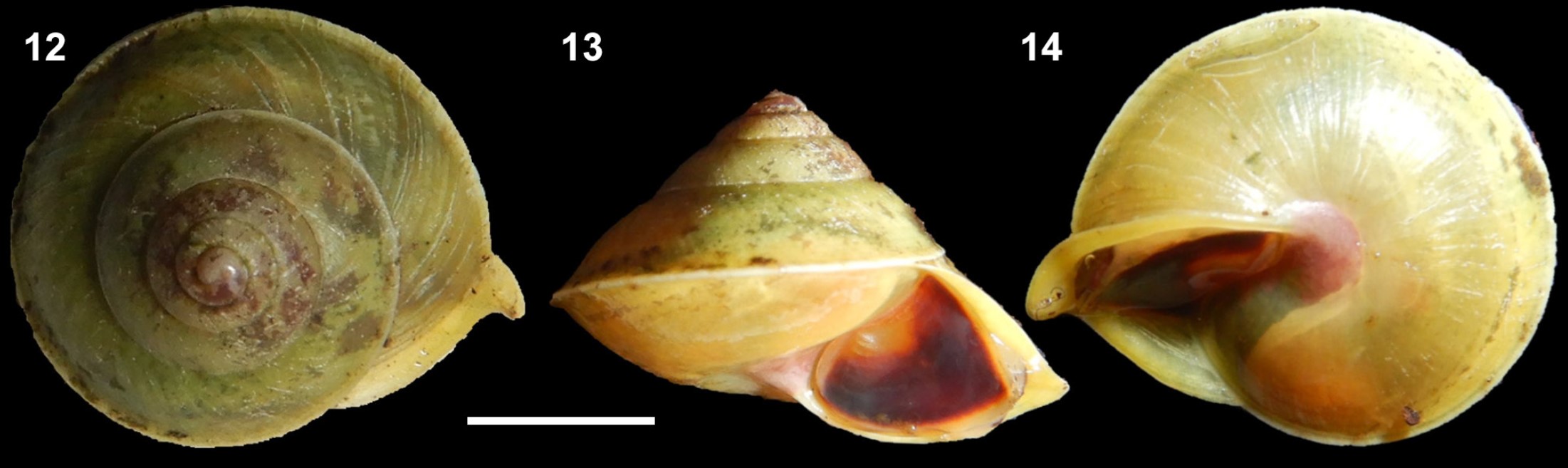 Figura: Breure, A. S. H., Roosen, M. T. & Ablett, J. D. (2022): Helicina ecuadoriana K. Miller, 1879, “Pichincha: Rio Pilatón valley”, figura original em MILLER (1879): pl. 5 fig. 4 (D 13 mm)
