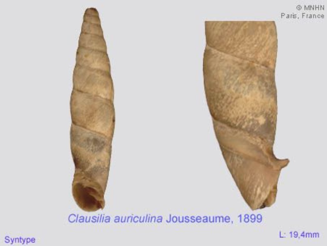 Descrição original: (como Nenia auriculina Jousseaume, 1900)Jousseaume, F. (1900). Mollusques terrestres. Clausilia, Rhodea et Bulimus Sud-Americanae. Bulletin de la Société Philomatique de Paris, ser. 9. 2(1): 5-44., disponível online emhttps://biodiversitylibrary.org/page/31964296