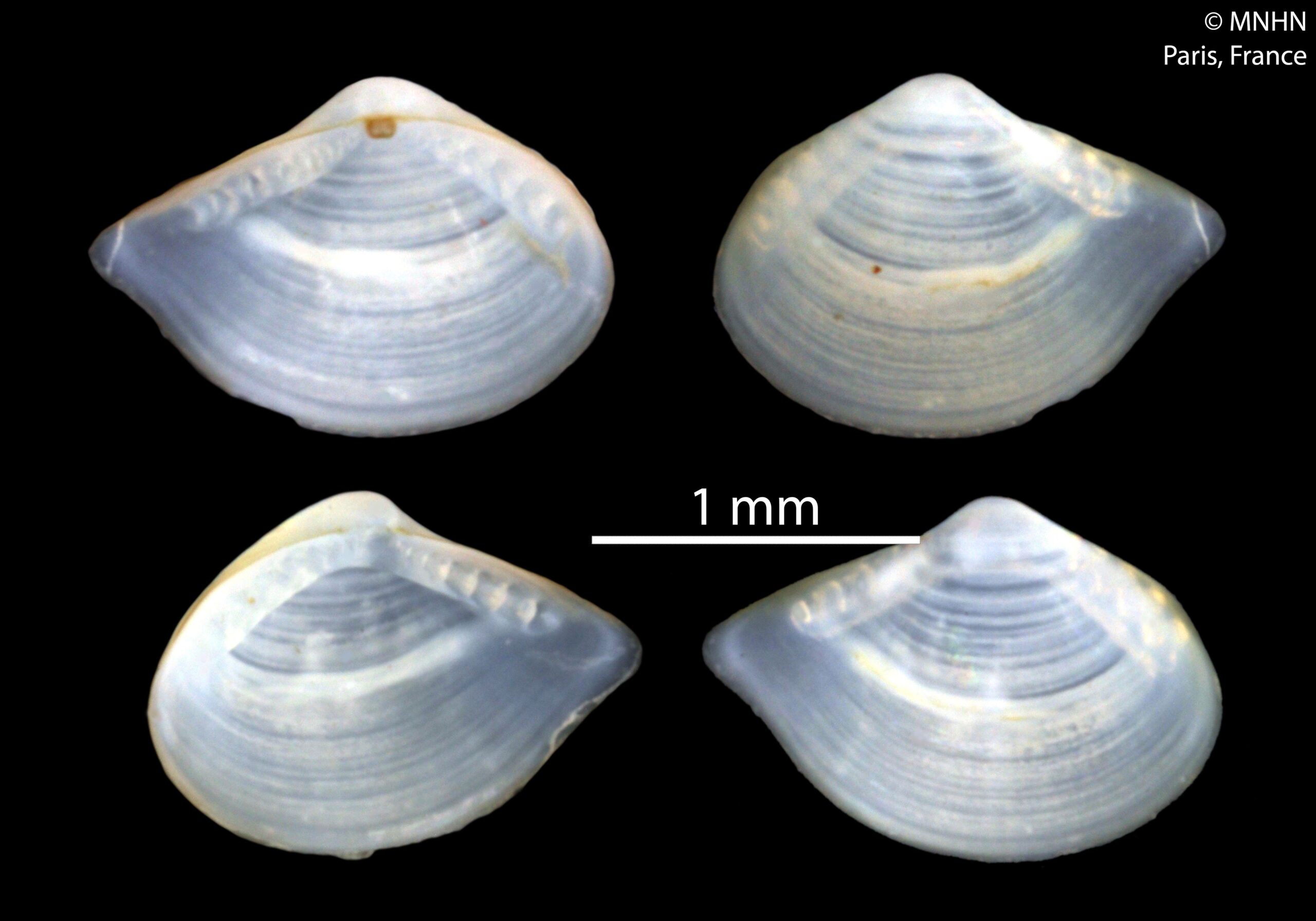 Fotos: Parátipo – Bacia de Campos, Rio de Janeiro, navio de pesquisa Astro-Garoupa, 22° 19′ 6.6” S ; 40° 5′ 26.3976” O, data da coleta 2008-07-08, 403 m de profundidade. 1,86 mm. MNHN-IM-2010-21017 – Museu Nacional de História Natural, Paris