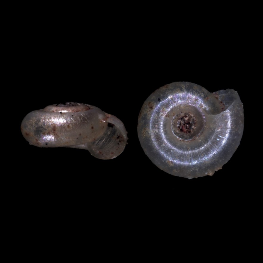 (Roosen et al. 2025): “Shell minute, discoid, c. 4 whorls; translucent, light brown. Protoconch (1¼ whorls) sculptured with multiple closely spaced spiral rows of microscopic punctae; c. 22 close to teleoconch transition. Transition to teleoconch marked by a gradual appearance of axial sculpture. Teleoconch sculptured with spiral rows of microscopic pits (that continue from protoconch) and well-marked rib-like axial striae, the latter closely packed together (space between ribs equal to one- or two-times rib width). Spire lightly raised, step-like. Suture well marked. Whorl profile convex, rounded. Umbilicus deep, wide (c. 30% shell width).
