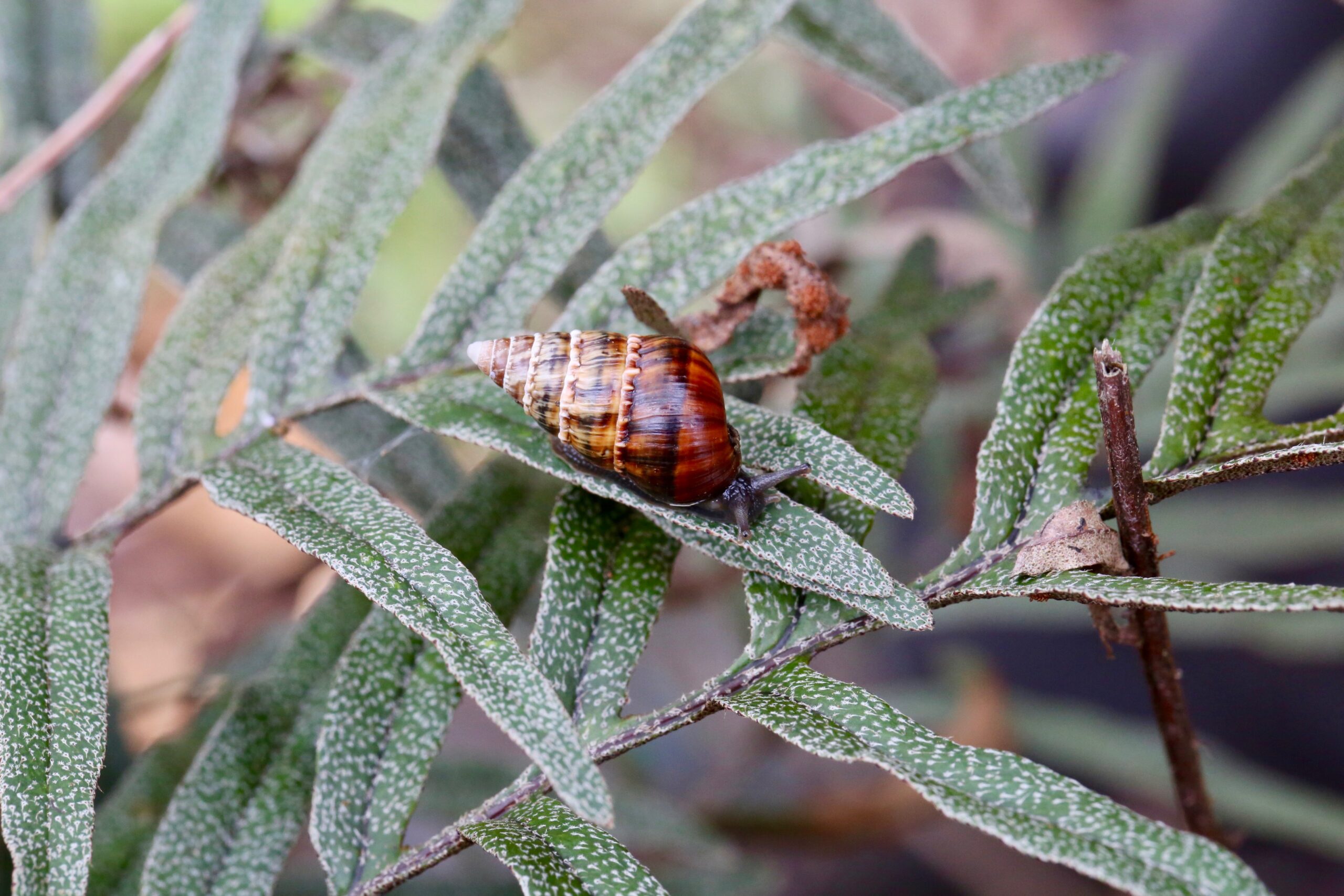 Fotos: (1-3) Natural History Museum, London: HOLOTYPE de Naesiotus achatellinus, NHMUK 1855.4.5.25, Chatham Island, coletado por Kellet, Wood; (4) animal vivo, crédito Andrew Kraemer, 6.vi.2017, “San Cristóbal Island, Galápagos, Ecuador”