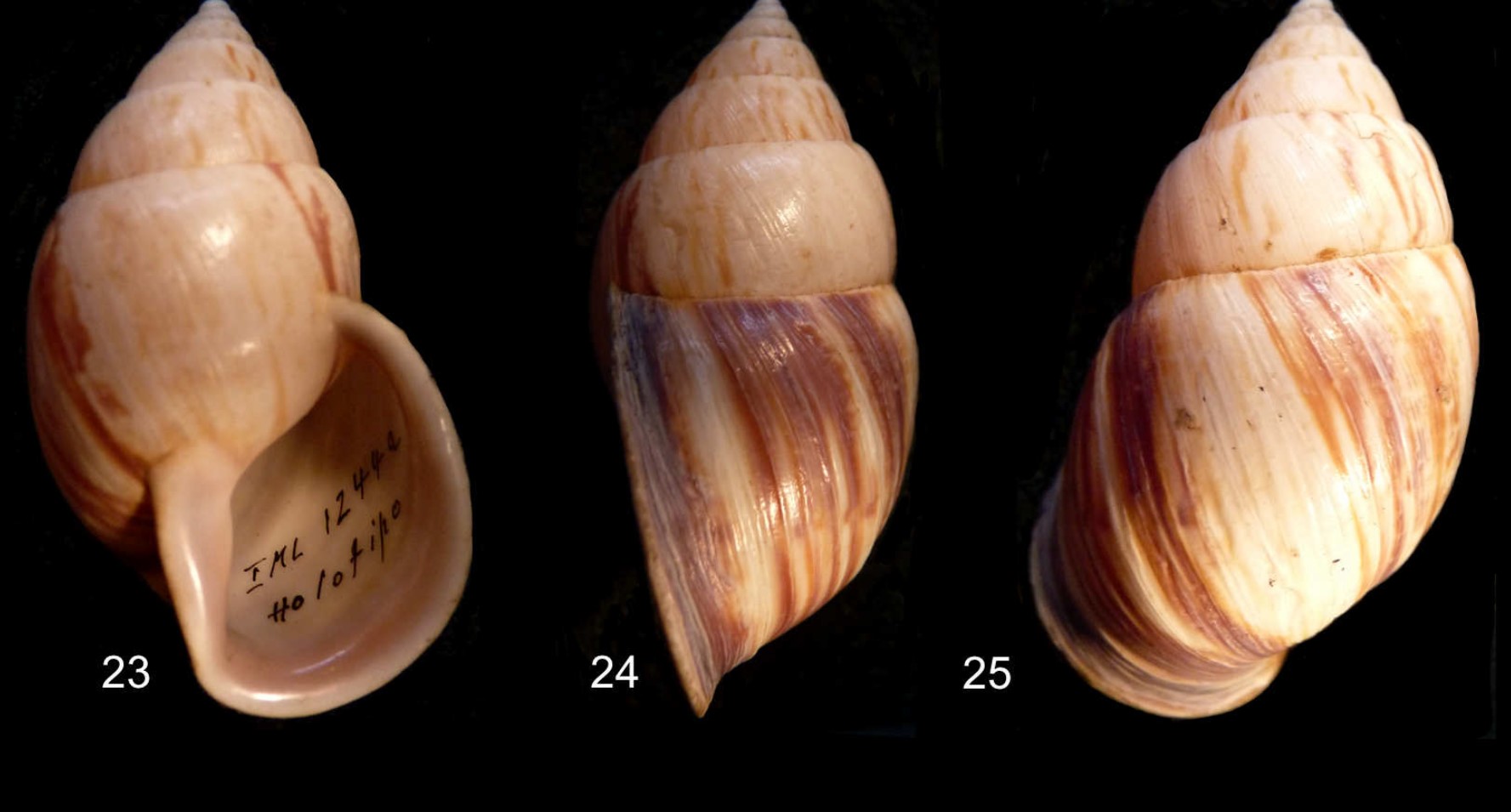 Figura 1: Breure, 2012: Fundación Miguel Lillo, Tucumán, Argentina, (23-25) Neopetraeus arboriferus obesus Weyrauch, 1967, HOLOTYPE FML 1244a (H = 43.5mm)