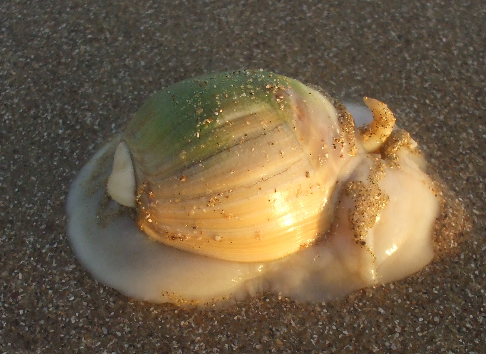 Olivancillaria auricularia em seu habitat natural. Barra do Chuí, Rio Grande do Sul. Foto: Geraldo Semer Pomponet Oliveira