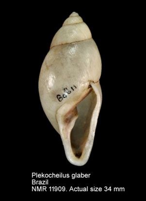 Comentários: a ocorrência de Plekocheilus glaber para o Brasil baseia-se em: i) Simone 2006 (página 151, foto 511 B, no lote MZSP 7959 no Museu de Zoologia de São Paulo); ii) Natural History Museum Rotterdam: NMR 11909 figurado abaixo