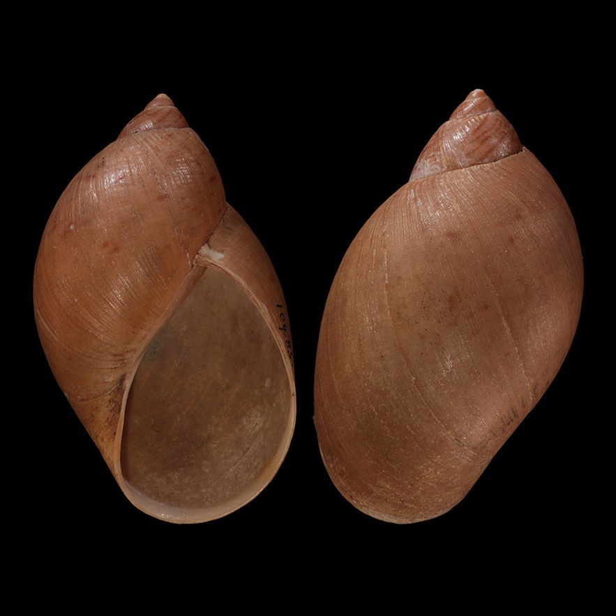 Fotos: (1-3) Natural History Museum, London: LECTOTYPE de Bulimus taylorianus Reeve, 1849, NHMUK 1874.12.11.271, Quito, Equador, 58.5 mm; (4) Museum für Naturkunde Berlin: PARALECTOTYPE de Bulimus taylorianus Reeve, ZMB 112722, Quito, coll Hugh Cuming, coll. Albers número 511; (5) Salvador et al. 2023: Auckland War Memorial Museum, AM MA11495, “Brasil”, sem localidade específica, registro considerado duvidoso, 54.9mm; (6) Collection of Natural History Museum Rotterdam, NMR 11918, Equador, 57mm