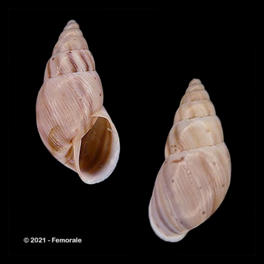 Foto: (1) cortesia Femorale, 2021, Bahia, 13.6 e 12 mm respectivamente; (2) Breure, A. S. H. (2020): Muséum d’histoire naturelle, Geneva MHNG-INVE-64598, coleção Moricand, 12.5 mm