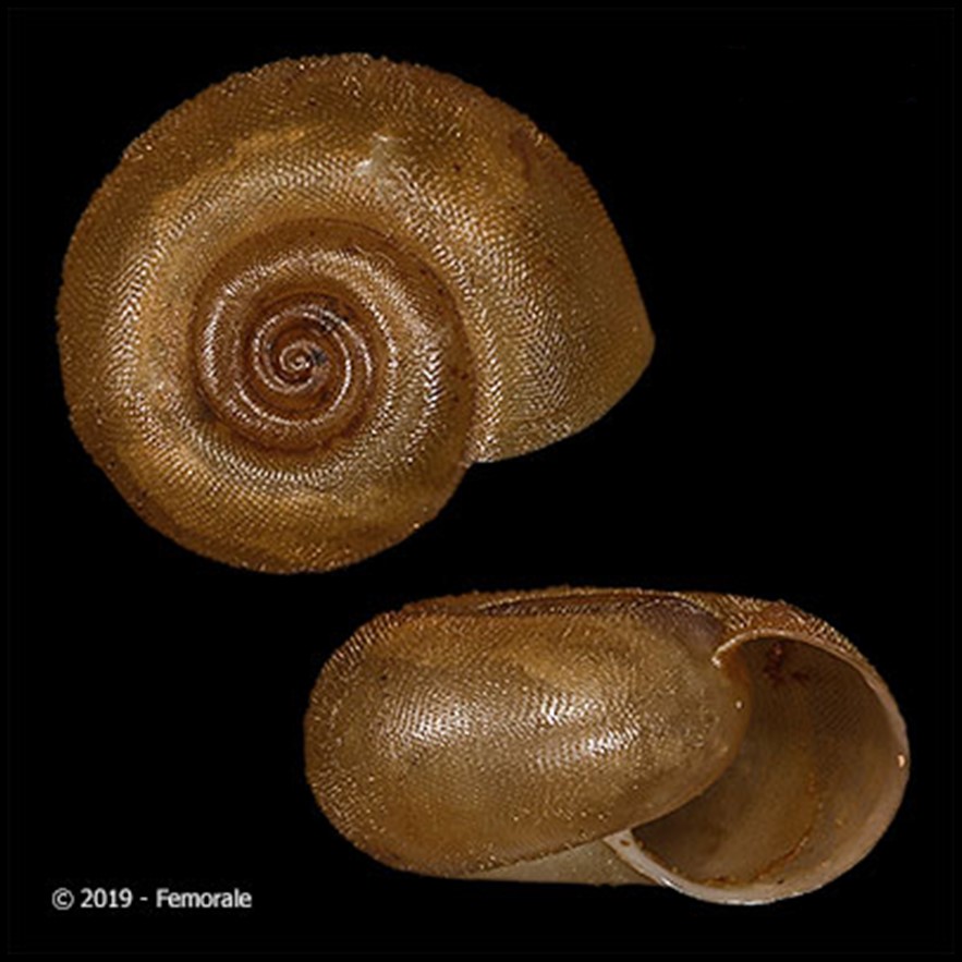 Fotos: (1-3) The Academy of Natural Sciences, Philadelphia: LECTOTYPE de Psadara derbyi cearana, ANSP 109344, Baker, Fred, Ceará, 1913; (4,5) Solaropsis cearana, cortesia Femorale, 2019, Ceará 16.8mm