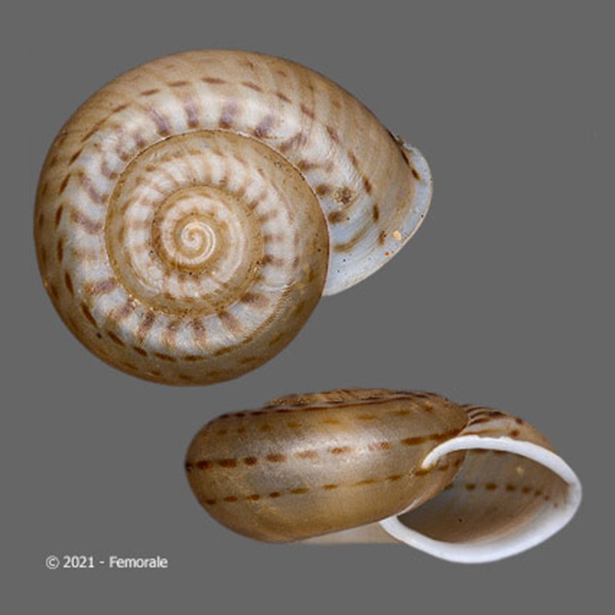 Fotos: (1) cortesia Femorale, 2023, 20.5mm; (2) Salvador, Rodrigo & Cavallari, Daniel & Simone, Luiz. (2015): Museu de Zoologia de São Paulo, lote MZSP 114871, H = 14.1mm, D = 23.8mm