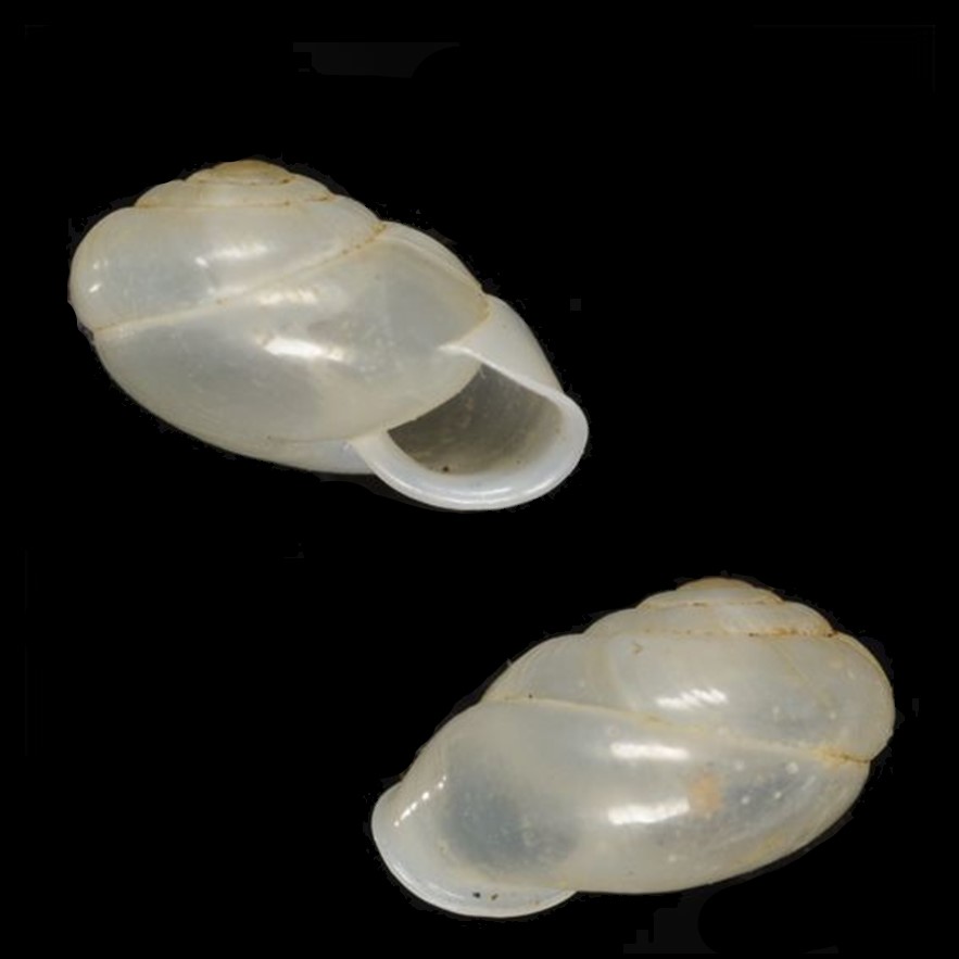Fotos: (1) município de Luís Correia, Piauí, 9mm, coll. Carlos Henckes; (2) The Academy of Natural Sciences, Philadelphia: LECTOTYPE de Streptaxis cookeana, ANSP 109304, coletado por F. Baker, 1911