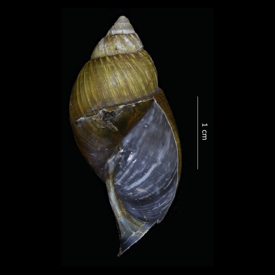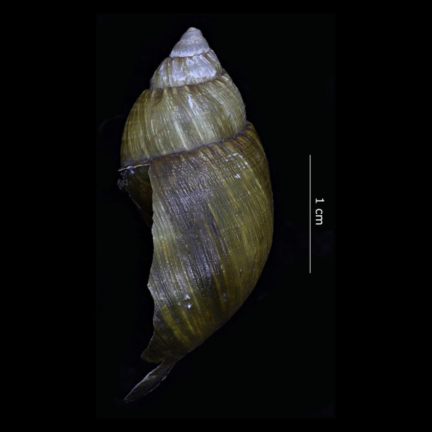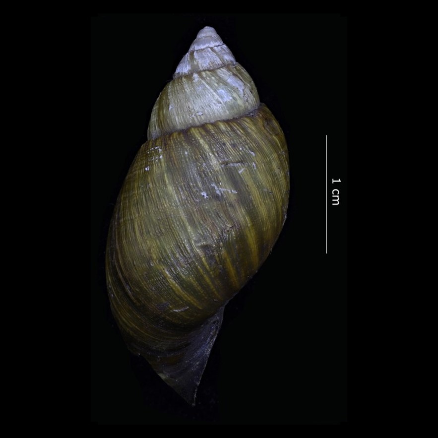 (Breure, 2011): “Shell 32.5 mm, 1.86 times as long as wide, elongate-ovate, with hardly convex sides, imperforate; very thin. Colour yellowish-olivaceus with brownish streaks, especially on last whorl. Upper whorls lighter in colour.