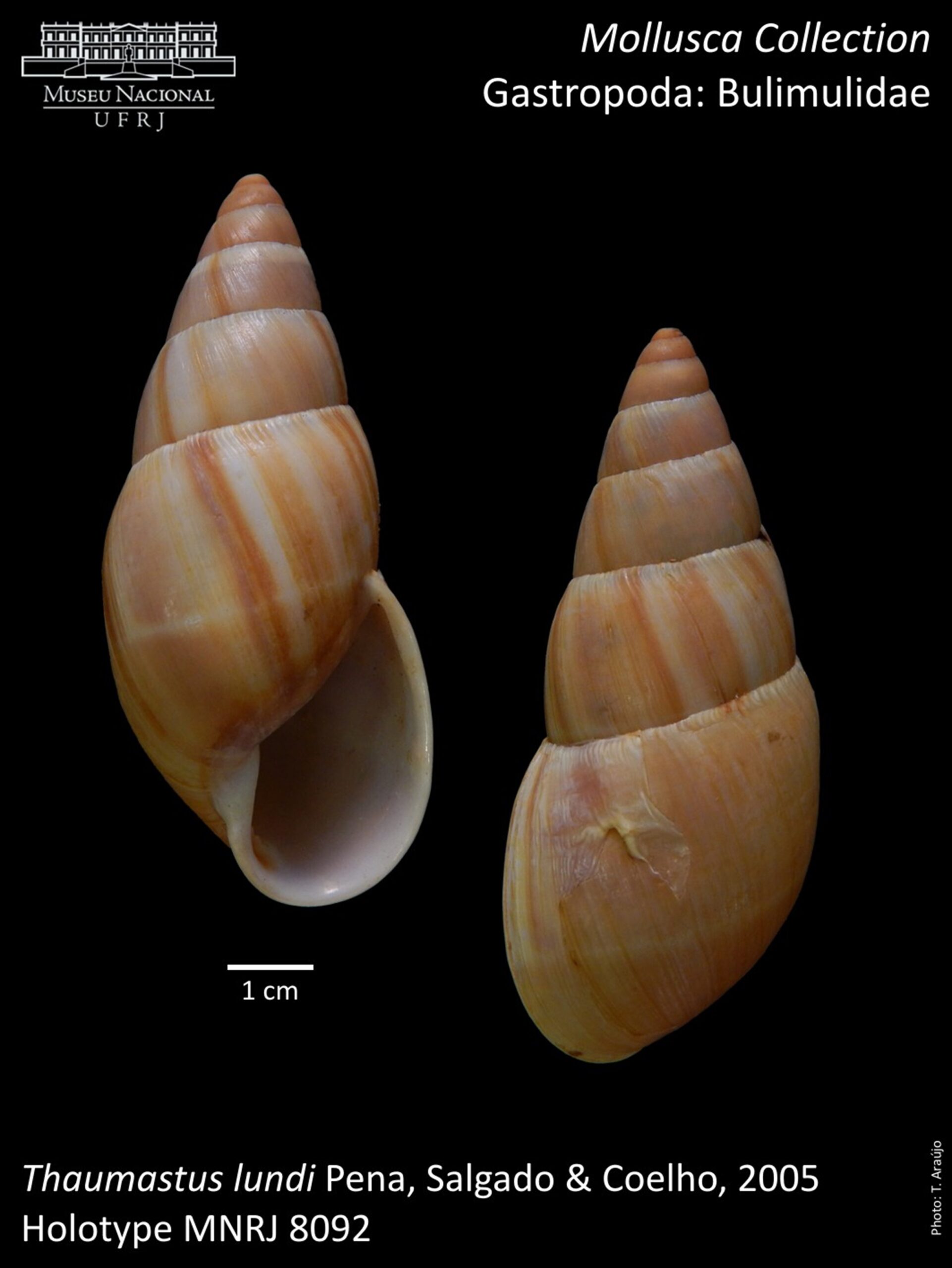 Descrição original: (como Thaumastus (Thaumastus) lundi Pena, Salgado & Coelho, 2005) Pena, M. S., Salgado, N. C. & Coelho, A. C. dos Santos. (2005). New species of Thaumastus from Lagoa Santa region, Minas Gerais State, Brazil (Mollusca, Gastropoda, Pulmonata, Bulimuloidea). Iheringia Série zoologia, Pôrto Alegre. 95(1): 21-24, 30. página 21. disponível online em https://doi.org/10.1590/S0073-47212005000100004