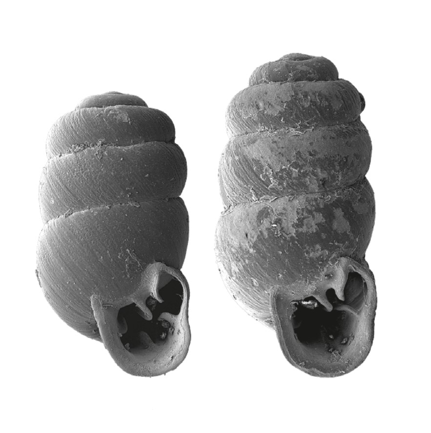 Fotos: (1) INPN / Olivier Gargominy, Guiana Francesa: MNHN & OFB [Ed]. 2003-2025. Fiche de Vertigo eyriesii (Drouët, 1859). Inventaire national du patrimoine naturel (INPN): (2) Salvador et al. 2018: Museu Nacional de História Natural, Paris: Brasil, Alagoas, Pedra Talhada, 1.4mm e 1.8mm respectivamente