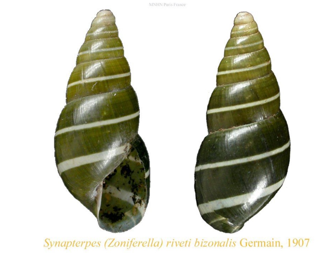 Descrição original: (como Synapterpes (Zoniferella) riveti var. bizonalis Germain, 1907) Germain, L. (1907). Sur quelques Mollusques de la République de l’Equateur (Mission de M. le Dr. Rivet). Bulletin du Muséum National d’Histoire Naturelle. 13(1): 52-63., disponível online em https://www.biodiversitylibrary.org/page/5042311