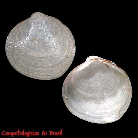 CLASSE: BIVALVIA: ÁGUA DOCE FAMÍLIA: CYRENOIDIDAE ESPÉCIE: Cyanocyclas brasiliana (Deshayes, 1854) Tamanho médio: 18 mm Profundidade: 0 - 10 m Habitat: vive em fundos arenosos, enterrada ou sob ele, em fundos lodosos e em plantas de água doce Frequência: Raro Ocorrência: Brasil (Pará) Localidade Tipo: Pará, Brasil Nome original: Corbicula brasiliana Deshayes, 1855 Sinônimos: Corbicula amazonica Prime, 1870; Corbicula obsoleta Deshayes, 1855; Corbicula tenuistriata Prime, 1860; Cyanocyclas amazonica (Prime, 1870); Cyanocyclas obsoleta (Deshayes, 1855) Fotos: The Academy of Natural Sciences, SYNTYPE de Corbicula amazonica; ANSP 54940, "Amazon River", doador: Anthony, J. G., Pará, Brasil Fontes: Descrição original: (como Corbicula brasiliana Deshayes, 1855) Deshayes, G. P. (1853-1855). Catalogue of the Conchifera or bivalve shells in the collection of the British Museum. British Museum, London,...