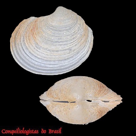 CLASSE: BIVALVIA: MARINHO FAMÍLIA: LUCINIDAE ESPÉCIE: Loripes brasilianus (A. d'Orbigny, 1846) Tamanho médio: 15 - 20 mm Profundidade: Habitat: fundos arenosos e lodosos Alimentação: filtrador Frequência: rara Ocorrência no Brasil: PE e RJ Localidade Tipo: Rio de Janeiro, Brasil Sinônimos: Loripes cryptella (d’Orbigny 1846); Lucina (Lucinida) cryptella A. d'Orbigny, 1846; Lucina brasiliana A. d'Orbigny, 1846; Lucina brasiliensis R. A. Philippi, 1849 Descrição original: Orbigny, A. D. d'. (1834-1847). Voyage dans l'Amérique méridionale (le Brésil, la république orientale de l'Uruguay, la République argentine, la Patagonie, la république du Chili, la république de Bolivia, la république du Pérou), exécuté pendant les années 1826, 1827, 1828, 1829, 1830, 1831, 1832 et 1833. Tome 5(3) Mollusques. available online at https://www.biodiversitylibrary.org/page/49211253 page(s): 709 [1846], pl....