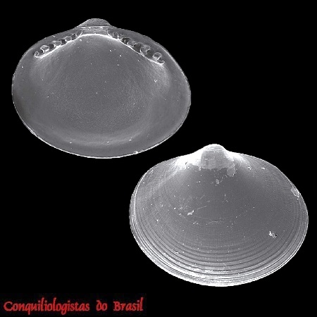 CLASSE: BIVALVIA: MARINHO FAMÍLIA: LASAEIDAE ESPÉCIE: Lasaea adansoni (Gmelin, 1791) Tamanho médio: 1 - 3 mm Profundidade: 0 - 37 metros Habitat: frequentemente encontrada vivendo em agregados de outros organismos, como Vermetídeos, Briozoários e Algas Alimentação: filtrador Frequência: raro Ocorrência no Brasil: toda costa brasileira (Rios, 2009) Localidade Tipo: Senegal Sinônimos: Amphidesma nucleola Lamarck, 1818; Poronia adansoniana Récluz, 1843; Tellina adansoni Gmelin, 1791 Descrição original: Gmelin, J. F. (1791). Caroli a Linné Systema Naturae, ed. 13. Tome 1(6). Vermes. G. E. Beer, Lipsiae [Leipzig]. pp. 3021-3910. , available online at http://www.biodiversitylibrary.org/item/83098#5 page(s): 3239 Referência: Passos, F.D., Batistão, A.R. & Lima, L.L.C. (2024). Checklist of marine Bivalvia (Mollusca) from Brazil, with descriptive analyses of their bathymetric and geographical distribution. Zootaxa, 5488(1): 1–94. https://doi.org/10.11646/zootaxa.5488.1.1...