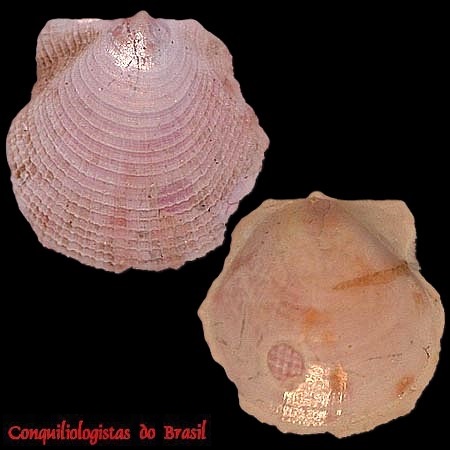 CLASSE: BIVALVIA: MARINHA FAMÍLIA: PROPEAMUSSIIDAE ESPÉCIE: Parvamussium cancellatum (E. A. Smith, 1885) Tamanho médio: 12 - 20 mm Profundidade: 24 - 2910 m (Malacolog) Habitat: em fundos arenosos e lodosos Alimentação: filtrador Frequência: rara Ocorrência no Brasil: ES até RS Localidade Tipo: Caribe Observação: aurícula anterior mais longa que a posterior. Valvas translúcidas, brancas ou creme. Face interna das valvas com 10 a 12 costelas radiais (liras), visíveis do lado externo, levemente engrossadas para a região ventral Sinônimos: Amusium cancellatum E.A. Smith, 1885; Propeamussium cancellatum (E. A. Smith, 1885) Descrição original: Smith, E. A. (1885). Report on the Lamellibranchiata collected by H.M.S. Challenger during the years 1873-76. Report on the Scientific Results of the Voyage of H.M.S. Challenger during...