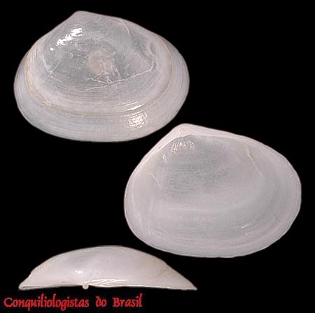 CLASSE: BIVALVIA: MARINHO FAMÍLIA: TELLINIDAE ESPÉCIE: Austromacoma biota (Arruda & Domaneschi, 2005) Tamanho médio: 30 - 35 mm Profundidade: 0 - 10 m Habitat: em fundos arenosos Alimentação: filtrador Frequência: comum Ocorrência no Brasil: RJ e SP Localidade Tipo: Caraguatatuba, São Paulo, Brasil Sinônimos: Macoma biota Arruda & Domaneschi, 2005 Descrição original: Arruda E.P. & Domaneschi O. 2005. New species of Macoma (Bivalvia: Tellinoidea: Tellinidae) from southeastern Brazil, and with description of its gross anatomy. Zootaxa 1012 : 13-22, available online at https://doi.org/10.11646/zootaxa.1012.1.2 WoRMS: https://www.marinespecies.org/aphia.php?p=taxdetails&id=879995 Malacolog: http://www.malacolog.org/search.php?nameid=15410 Fotos A e B: Peruibe, São Paulo. 28,6 mm. Col. C.Koprick ...