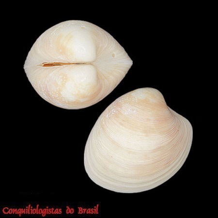 CLASSE: BIVALVIA: MARINHO FAMÍLIA: VENERIDAE ESPÉCIE: Cyclinella tenuis (Récluz, 1852) Tamanho médio: 25 - 35 mm Profundidade: 1 - 66 m Habitat: em fundos arenosos Alimentação: filtrador Frequência: incomum Ocorrência no Brasil: RN até SC Localidade Tipo: não documentada Sinônimos: Cyclina fragilis Römer, 1860; Dosinia tenuis Récluz, 1852; Lucinopsis tenuis (Récluz, 1852) Descrição original: não documentada WoRMS: https://www.marinespecies.org/aphia.php?p=taxdetails&id=156826 Malacolog: http://www.malacolog.org/search.php?nameid=13307 Foto A: Ilhabela, São Paulo. 31,1 mm. Col. E.Schirrmeister