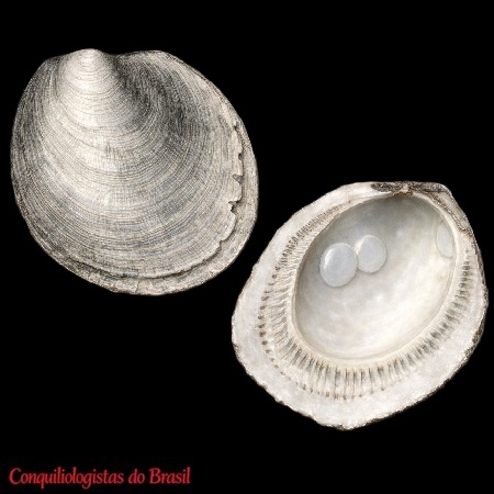 CLASSE: BIVALVIA: ÁGUA DOCE FAMÍLIA: CYRENOIDIDAE ESPÉCIE: Cyanocyclas brasiliana (Deshayes, 1854) Tamanho médio: 18 mm Profundidade: 0 - 10 m Habitat: vive em fundos arenosos, enterrada ou sob ele, em fundos lodosos e em plantas de água doce Frequência: Raro Ocorrência: Brasil (Pará) Localidade Tipo: Pará, Brasil Nome original: Corbicula brasiliana Deshayes, 1855 Sinônimos: Corbicula amazonica Prime, 1870; Corbicula obsoleta Deshayes, 1855; Corbicula tenuistriata Prime, 1860; Cyanocyclas amazonica (Prime, 1870); Cyanocyclas obsoleta (Deshayes, 1855) Fotos: The Academy of Natural Sciences, SYNTYPE de Corbicula amazonica; ANSP 54940, "Amazon River", doador: Anthony, J. G., Pará, Brasil Fontes: Descrição original: (como Corbicula brasiliana Deshayes, 1855) Deshayes, G. P. (1853-1855). Catalogue of the Conchifera or bivalve shells in the collection of the British Museum. British Museum, London,...