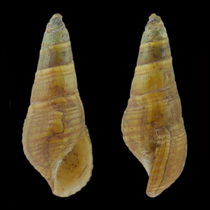 CLASSE: GASTROPODA: ÁGUA DOCE FAMÍLIA: HEMISINIDAE ESPÉCIE: Aylacostoma chloroticum Hylton Scott, 1954 Tamanho médio: 37 mm Habitat: Rios e riachos Ocorrência: Ato Rio Paraná, entre Argentina e Paraguai Localidade tipo: Paraguai Nome original: Aylacostoma chlorotica Hylton Scott, 1954 Descrição: Vogler et al. 2025: "Concha cónica a fusiforme con ápice desgastado, alcanzando al menos 4,2 cm. Color amarillo verdoso a marrón verdoso. Algunos ejemplares con manchas espirales diminutas de color marrón rojizo. Protoconcha presente solo en juveniles con dos vueltas lisas, convexas y redondeadas. Escultura espiral a partir de la tercera vuelta. Juveniles con delicadas manchas de color rojo vino, excepto por la banda debajo de la sutura, sin decoración. Teleoconcha con hasta ocho vueltas, en la mayoría de los casos con...