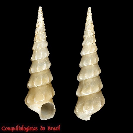 CLASSE: GASTROPODA :: MARINHO FAMÍLIA: ABYSSOCHRYSIDAE ESPÉCIE: Abyssochrysos brasilianus Bouchet, 1991 Tamanho médio: 23 - 29 mm Profundidade: 620 até 1540 m Habitat: Alimentação: Frequencia: raro Ocorrência no Brasil: RJ até ES Localidade Tipo: Cabo de São Tomé, Rio de Janeiro, Brasil Sinônimo: Abyssochrysos brasilianum Bouchet, 1991 Descrição original: Bouchet, P. (1991). New records and new species of Abyssochrysos (Mollusca, Caenogastropoda). Journal of Natural History. 25(2): 305-313., available online at https://doi.org/10.1080/00222939100770221 WoRMS: https://www.marinespecies.org/aphia.php?p=taxdetails&id=590705 Malacolog: http://www.malacolog.org/search.php?nameid=1111 Foto A: HOLÓTIPO - Cabo de São Tomé, Rio de Janeiro. 22,2 mm. MNHN-IM-2000-32677, 22.2 mm. Museu Nacional de História Natural, Paris Foto B: off Macaé, Rio de Janeiro. 29 mm. Col. S.Vanin