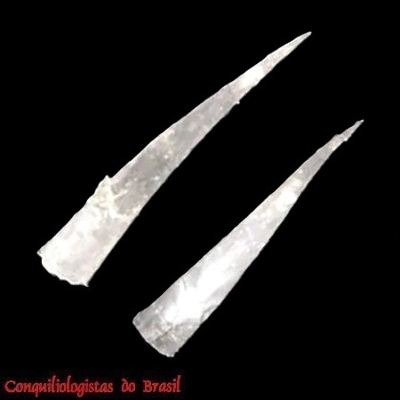 CLASSE: GASTROPODA: MARINHO FAMÍLIA: CAVOLINIIDAE ESPÉCIE: Diacria trispinosa (Blainville, 1821) Tamanho médio: 5 - 8 mm Profundidade: 10 - 4791 m Habitat: pelágico Alimentação: carnívoro Frequência: incomum Ocorrência no Brasil: toda costa brasileira Localidade Tipo: Siônimos: Hyalaea cuspidata auct. non Bosc, 1802; Hyalaea trispinosa Blainville, 1821; Pleuropus trispinosa (Blainville, 1821); Cavolina trispinosa (Blainville, 1821); Pleuropus mucronata (Quoy & Gaimard, 1827); Hyalaea mucronata Quoy & Gaimard, 1827; Hyalaea depressa Bivona, 1832; Clio depressa (Bivona, 1832); Cleodora infundibulum S. V. Wood, 1842; Hyalia aculeata (d'Orbigny, 1846); Hyalaea aculeata d'Orbigny, 1846; Clio compressa (Souleyet, 1851); Cleodora compressa Souleyet, 1851; Hyalaea reeveana Dunker, 1853; Cavolinia bisulcata (Gabb, 1873); Diacria bisulcata Gabb, 1873; Hyalaea minor Boas, 1886; Diacria atlantica L. Dupont, 1979 Descrição original: https://www.biodiversitylibrary.org/page/6010392#page/324/mode/1up WoRMS: https://www.marinespecies.org/aphia.php?p=taxdetails&id=139045 Malacolog: http://www.malacolog.org/search.php?nameid=8386 Foto A: Banco Canopus, off Fortaleza, Ceará. 260 m prof. 9 mm. Femorale
