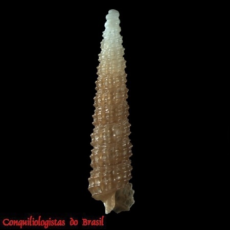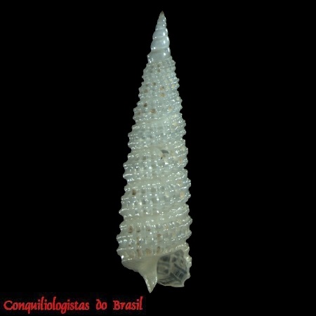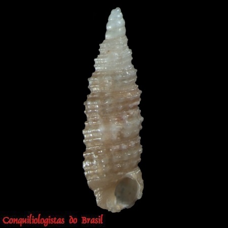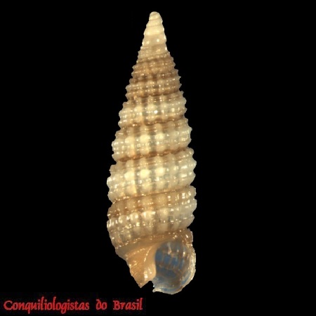 CLASSE: GASTROPODA: MARINHO FAMÍLIA: CERITHIOPSIDAE ESPÉCIE: Cubalaskeya nivea (Faber, 2007) Tamanho médio: 5 - 6 mm Profundidade: 6 - 60 metros Habitat: fundos areno-lodosos Alimentação: carnívoro Frequência: rara Ocorrência no Brasil: PE Localidade Tipo: Carrie Bow Cay, Belize Sinônimo: Retilaskeya nivea Faber, 2007 Descrição original: Faber M.J. 2007. Marine gastropods from the ABC Islands and other localities. 19. The genera Cerithiella and Retilaskeya (Gastropoda: Cerithiopsidae) with the description of a new species of Retilaskeya. Miscellanea Malacologica, 2(4): 79-83. WoRMS: https://www.marinespecies.org/aphia.php?p=taxdetails&id=579235 Malacolog: http://www.malacolog.org/search.php?nameid=15882 Foto A: Pernambuco. 5,4 mm. MNRJ 17235. Alexandre Dias Pimenta, Raquel Garofalo de Souza Faria, Raquel Medeiros Andrade Figueira & Maurício Romulo Fernandes (2024). Unraveling another of the ‘Big Fiveʹ: new species and records of Cerithiopsidae from Brazil (Caenogastropoda: Triphoroidea)
