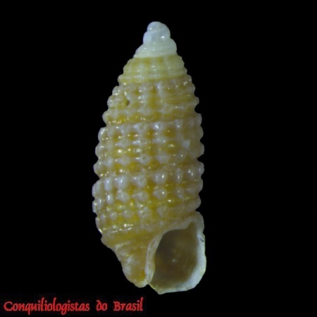 CLASSE: GASTROPODA: MARINHO FAMÍLIA: CERITHIOPSIDAE ESPÉCIE: Cerithiopsis gemmulosa (C. B. Adams, 1850) Tamanho médio: 3 - 5 mm Profundidade: 0 - 91 metros Habitat: fundos areno-lodosos Alimentação: carnívoro Frequência: incomum Ocorrência no Brasil: AP até SC e Fernando de Noronha Localidade Tipo: Jamaica Sinônimos: Bittium gemmulosa (C. B. Adams, 1850); Cerithium gemmulosum C. B. Adams, 1850 Descrição original: https://www.biodiversitylibrary.org/page/13796470#page/66/mode/1up WoRMS: https://www.marinespecies.org/aphia.php?p=taxdetails&id=419876 Malacolog: http://www.malacolog.org/search.php?mode=details&waspid=6327 Foto A: Santa Catarina. 4,9 mm. Alexandre Dias Pimenta, Raquel Garofalo de Souza Faria, Raquel Medeiros Andrade Figueira & Maurício Romulo Fernandes (2024). Unraveling another of the ‘Big Fiveʹ: new species and records of Cerithiopsidae from Brazil (Caenogastropoda: Triphoroidea)