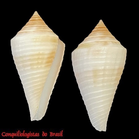 CLASSE: GASTROPODA: MARINHO FAMÍLIA: CONIDAE ESPÉCIE: Conasprella iansa (Petuch, 1979) Tamanho médio: 12 - 18 mm Profundidade: 1 - 25 metros Habitat: em fundos de detritos e areia coralígena (descrição original) Alimentação: carnívoro Frequência: raro Ocorrência no Brasil: RN e BA Localidade Tipo: Alcobaça, Bahia, Brasil Sinônimos: Conasprella bianchii (Petuch & Berschauer, 2018); Coltroconus bianchii Petuch & Berschauer, 2018 Descrição original: https://www.biodiversitylibrary.org/page/35514227#page/540/mode/1up WoRMS: https://www.marinespecies.org/aphia.php?p=taxdetails&id=834388 Foto A: Rio Grande do Norte. 18 mm. Col. C.Henckes Ilha de Santa Bárbara, Abrolhos, Bahia. 25 m prof. 12 mm Holótipo USNM