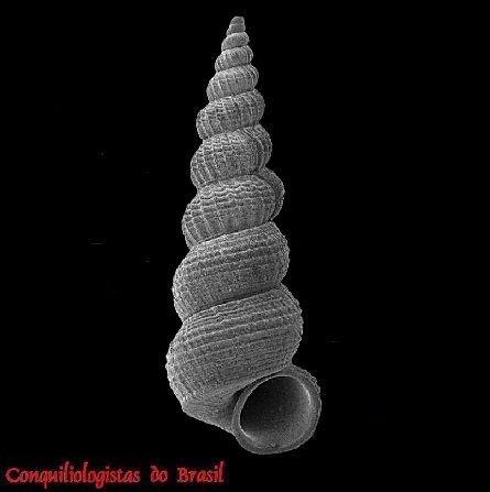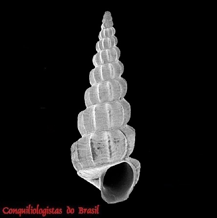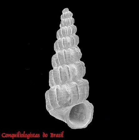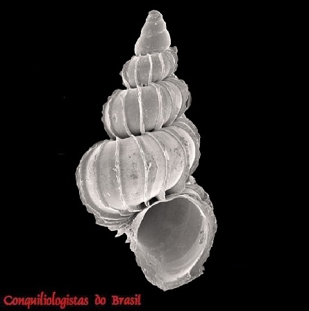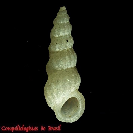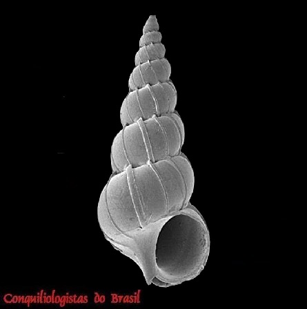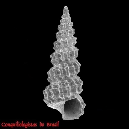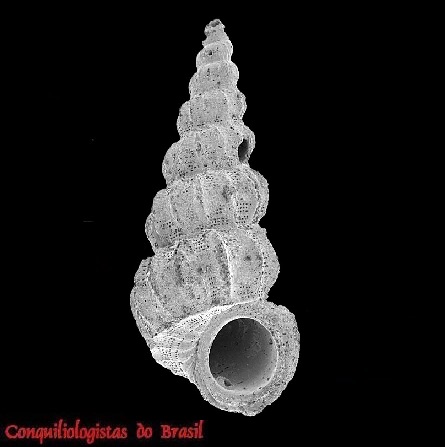 CLASSE: GASTROPODA: MARINHO FAMÍLIA: EPITONIIDAE ESPÉCIE: Papuliscala elongata (R. B. Watson, 1881) Tamanho médio: 3 - 4 mm Profundidade: 460 - 2102 m Habitat: Alimentação: carnivoro Frequência: raro Ocorrência no Brasil: RN até RJ Localidade Tipo: São Miguel, Açores Sinônimo: Papuliscala nordestina Lima & Christoffersen, 2013; Fenella elongata R. B. Watson, 1881 Descrição original: Watson, R.B. (1881). Mollusca of H.M.S. Challenger Expedition. Parts VIII, IX, X. Journal of the Linnean Society, Zoology. 15: 388-475., available online at https://biodiversitylibrary.org/page/37088539 page(s): 249 Referência: Andrade, Bruno Garcia. Revisão taxonômica das famílias Epitoniidae e Nystiellidae (Mollusca, Gastropoda, Epitonioidea) nas províncias Tropical e Temperada do Atlântico sudoeste. Rio de Janeiro. UFRJ, Museu Nacional. 2017, xxxix + 467 pp WoRMs: https://www.marinespecies.org/aphia.php?p=taxdetails&id=139755 Malacolog: http://www.malacolog.org/search.php?nameid=3548 Foto A: Lectótipo. São...