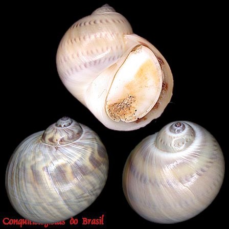 CLASSE: GASTROPODA: MARINHO FAMÍLIA: NATICIDAE ESPÉCIE: Notocochlis isabelleana (d'Orbigny, 1840) Tamanho médio: 15 - 25 mm Profundidade: 19 - 72 metros Habitat: fundos areno-lodosos Alimentação: carnívoro Frequência: comum Ocorrência no Brasil: ES até RS Localidade Tipo: Maldonado, Uruguai Observação: Foi anteriormente identificada como Natica limbata d”Orbigny, 1840 ou Natica atrocyanea Philippi, 1845 (ex. Rios 1979, 1985, 1994). Sinônimos: Natica isabelleana d'Orbigny, 1840 Descrição original: Orbigny, A. D. d'. (1834-1847). Voyage dans l'Amérique méridionale (le Brésil, la république orientale de l'Uruguay, la République argentine, la Patagonie, la république du Chili, la république de Bolivia, la république du Pérou), exécuté pendant les années 1826, 1827, 1828, 1829, 1830, 1831, 1832 et 1833. Tome 5(3) Mollusques. pp. i-xliii, 1-758, 85 plates [pls 1-2, 1834; pp....